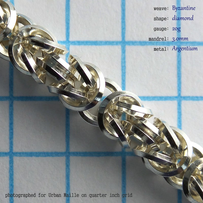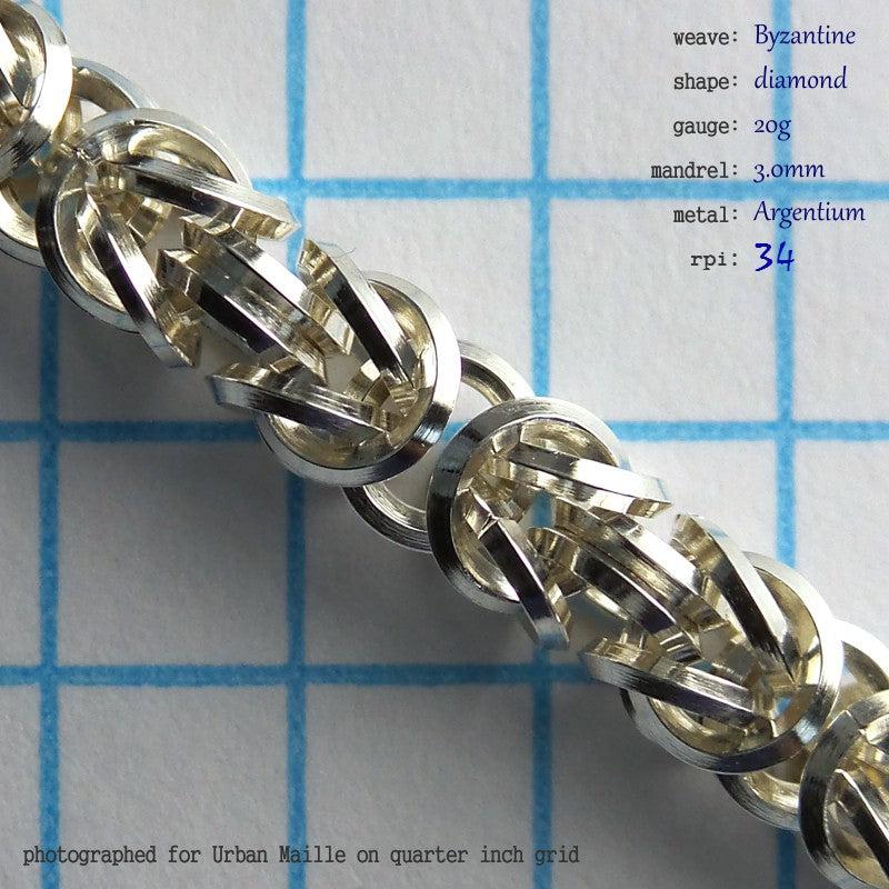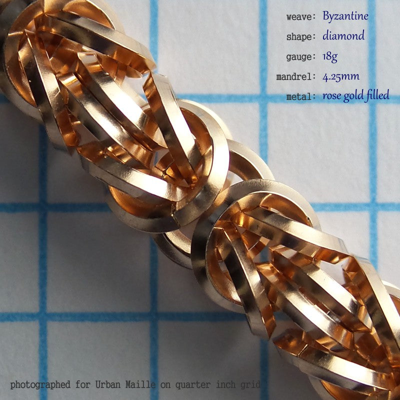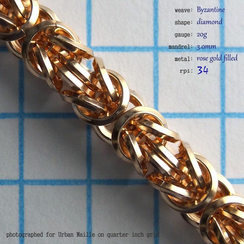 We have free instructions for this weave. Click Byzantine Chain Instructions to open them in a new page. Keep in mind that closing shaped rings perfectly is considerably more difficult than closing round rings perfectly, making this an intermediate project.