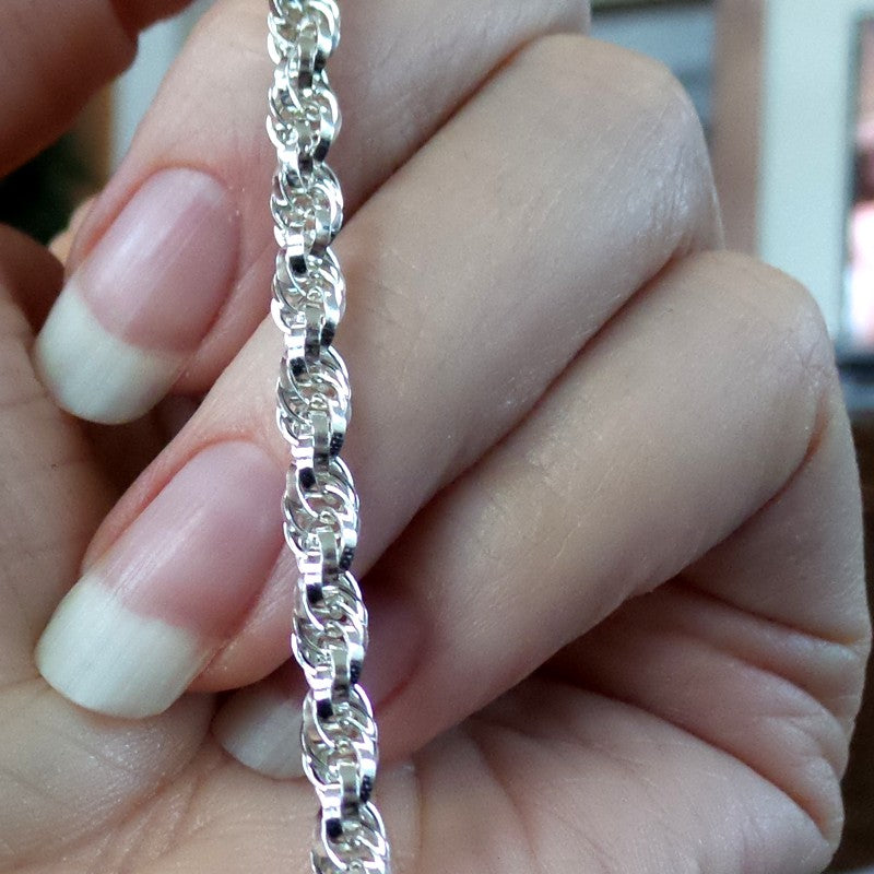 We don't have instructions for this specific weave, but it goes together like Double Spiral 4-in-1. Click Double Spiral 4-in-1 Instructions to open those in a new page. Keep in mind that closing shaped rings perfectly is considerably more difficult than closing round rings perfectly.